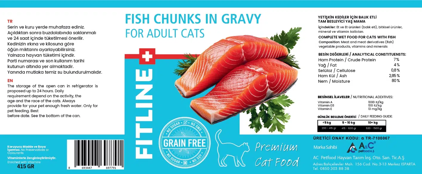 Yetişkin kediler için özel olarak geliştirilen Tahılsız Balık Etli Yaş Mama, yüksek kaliteli balık eti içeriğiyle kedinizin doğal beslenme ihtiyacına uygun, lezzetli ve tam dengeli bir öğün sunar. Tahıl içermeyen yapısı sayesinde hassas sindirime sahip kediler için ideal bir tercihtir.