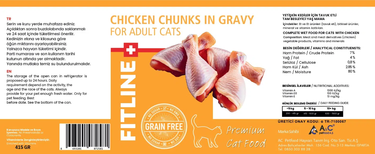 Yetişkin kediler için özel olarak geliştirilen Tahılsız Tavuk Etli Yaş Mama, yüksek kaliteli tavuk etiyle hazırlanmış lezzetli ve besleyici bir formüle sahiptir. Tahıl içermeyen yapısı, hassas sindirime sahip veya alerjiye yatkın kediler için ideal bir seçimdir. Yumuşak kıvamı ve yoğun aroması kedilerin iştahını artırırken, dengeli vitamin–mineral içeriği günlük beslenme ihtiyaçlarını karşılar.